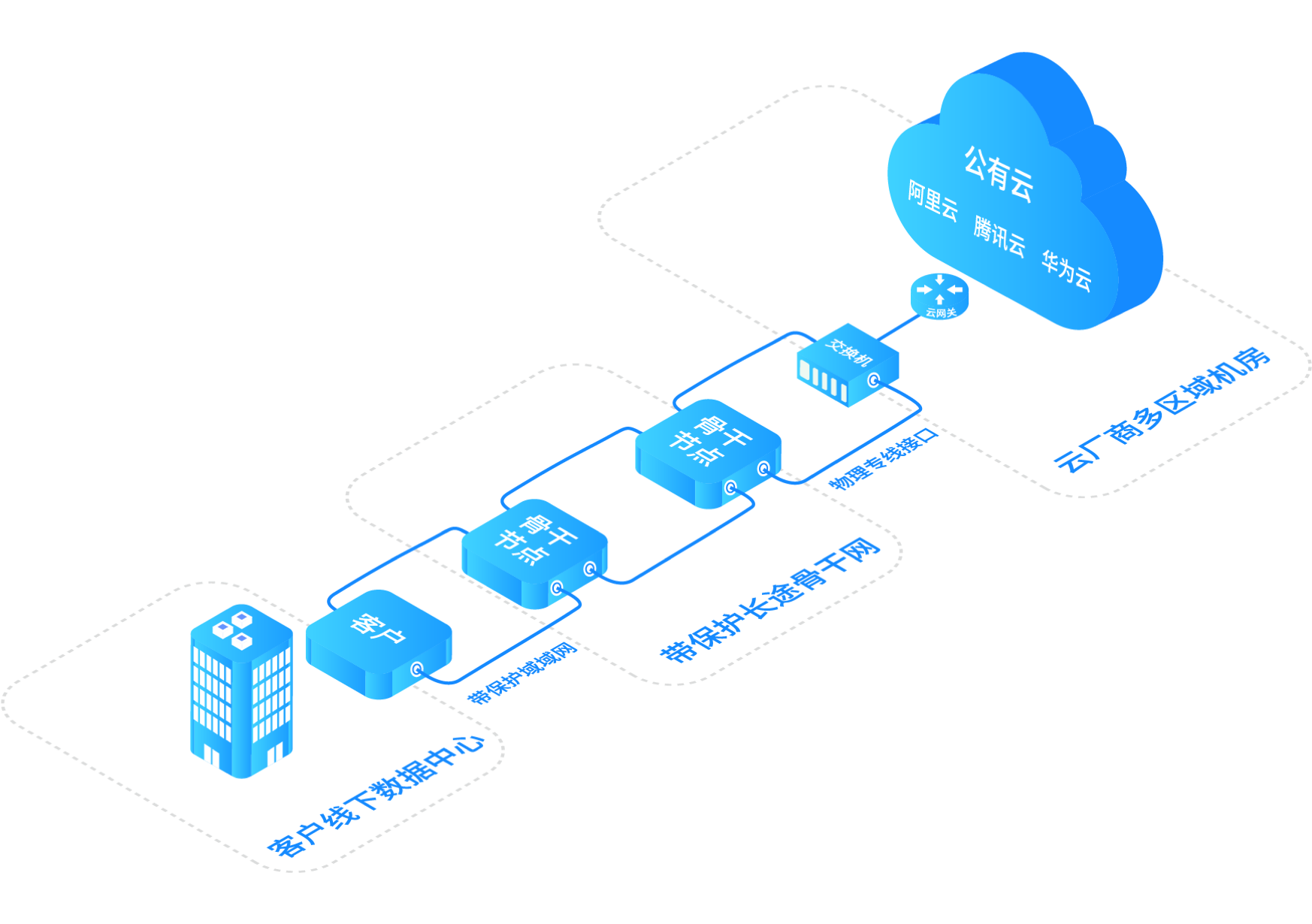 为客户提供云上与线下、以及多云间互联的混合连接解决方案