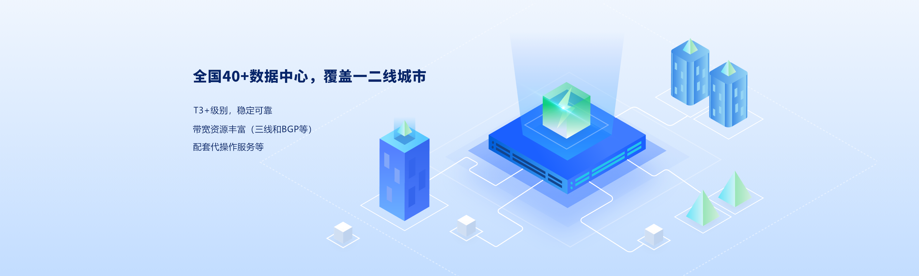 拥有通达全国的专线资源、三大运营商互联网带宽资源、以及服务器硬件资源(物理机或虚拟机)等